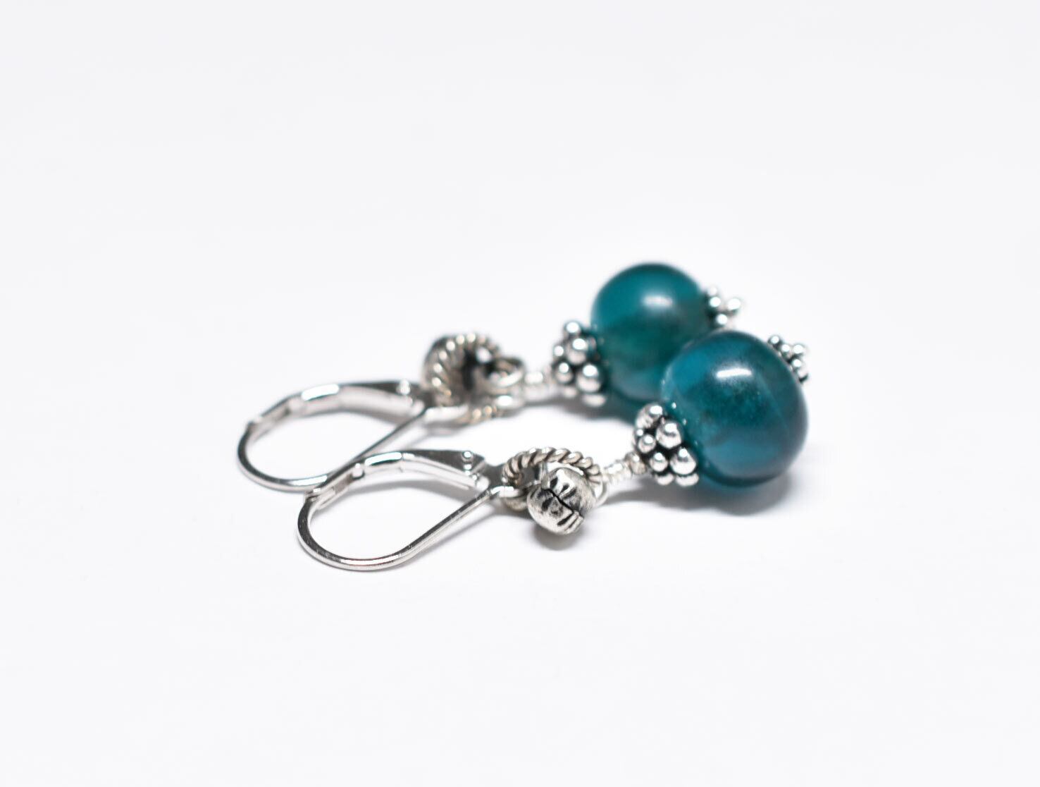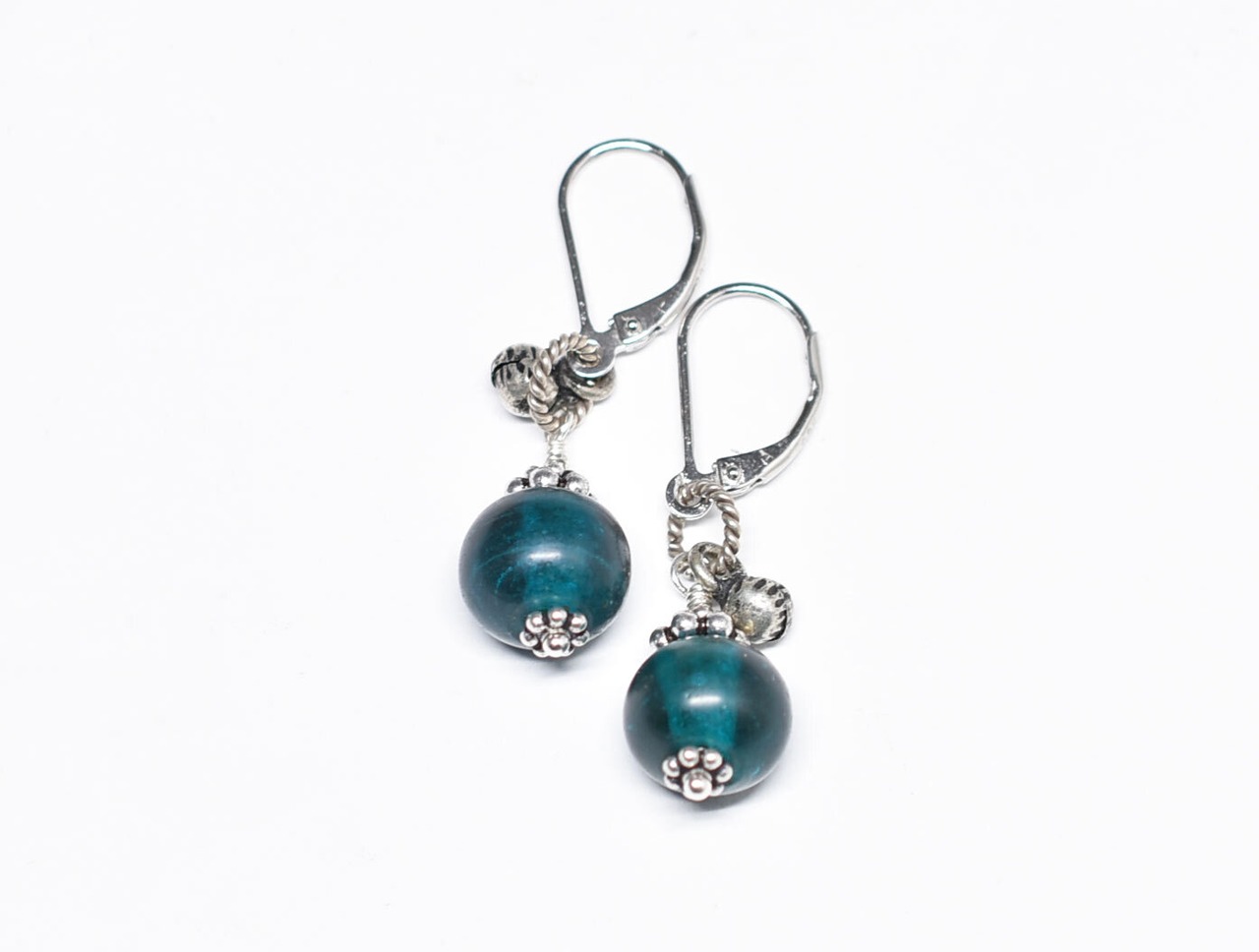 インディゴブルーブルーヴィンテージビーズとインドシルバー鈴のピアス