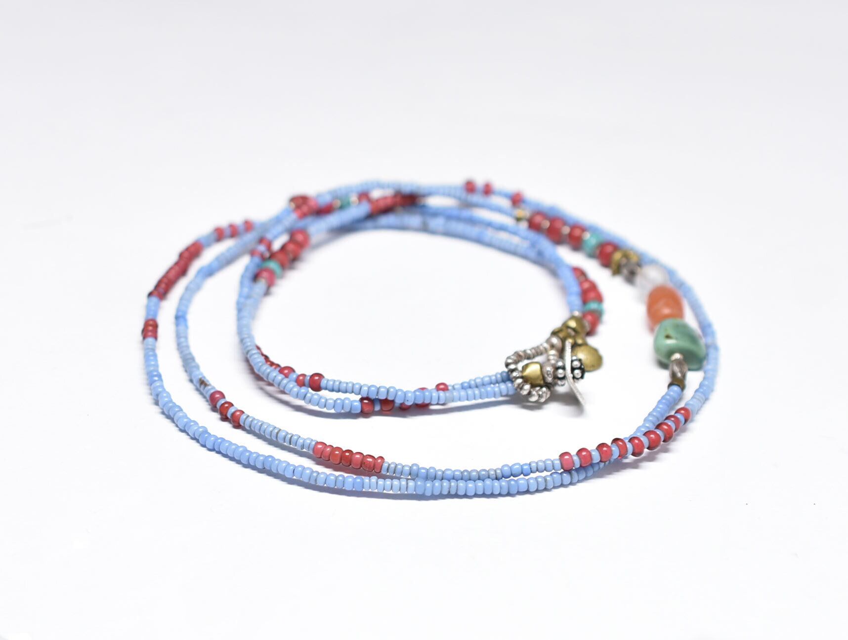 小さなゼニスブルーのビーズはヴェネチアで作られ、インドにに渡った古いシードビーズです。(19~20世紀頃)