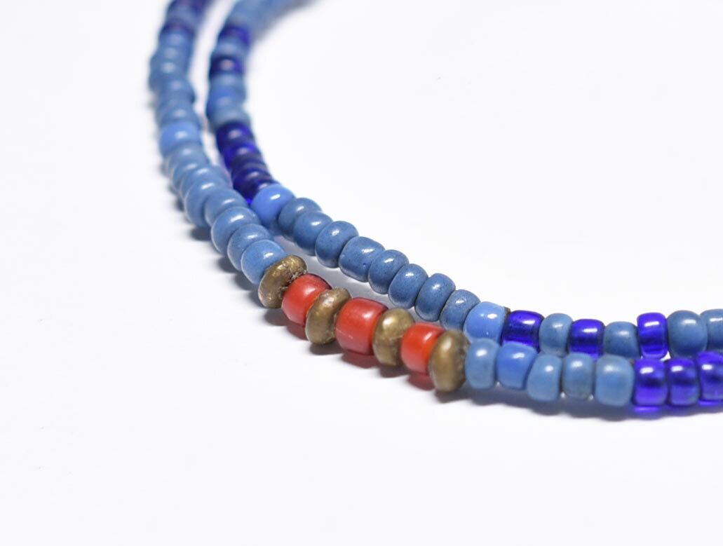 ツブツブのビーズは、アフリカのベニン族が作ったブラスビーズです。