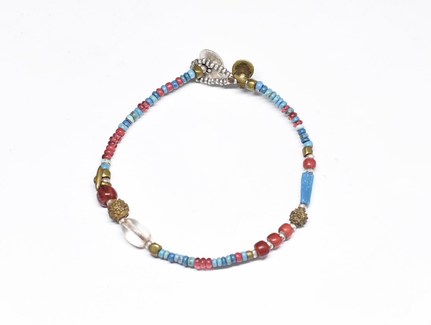 金色のビーズや大きめな金赤ビーズ横の錨のようなチャームはoldオリッサブラスです。インドのオリッサ州から届いた古くて希少なビーズです。