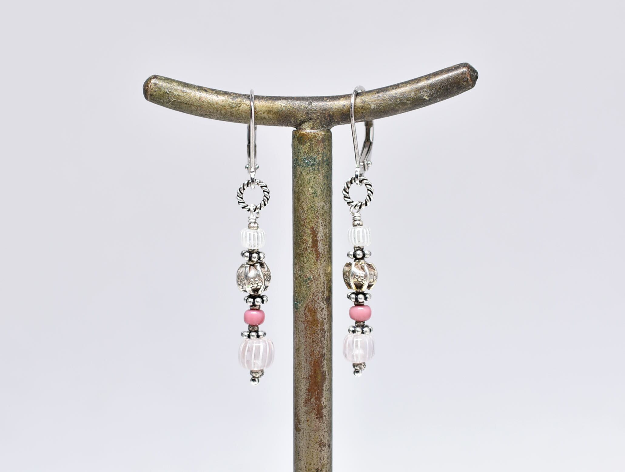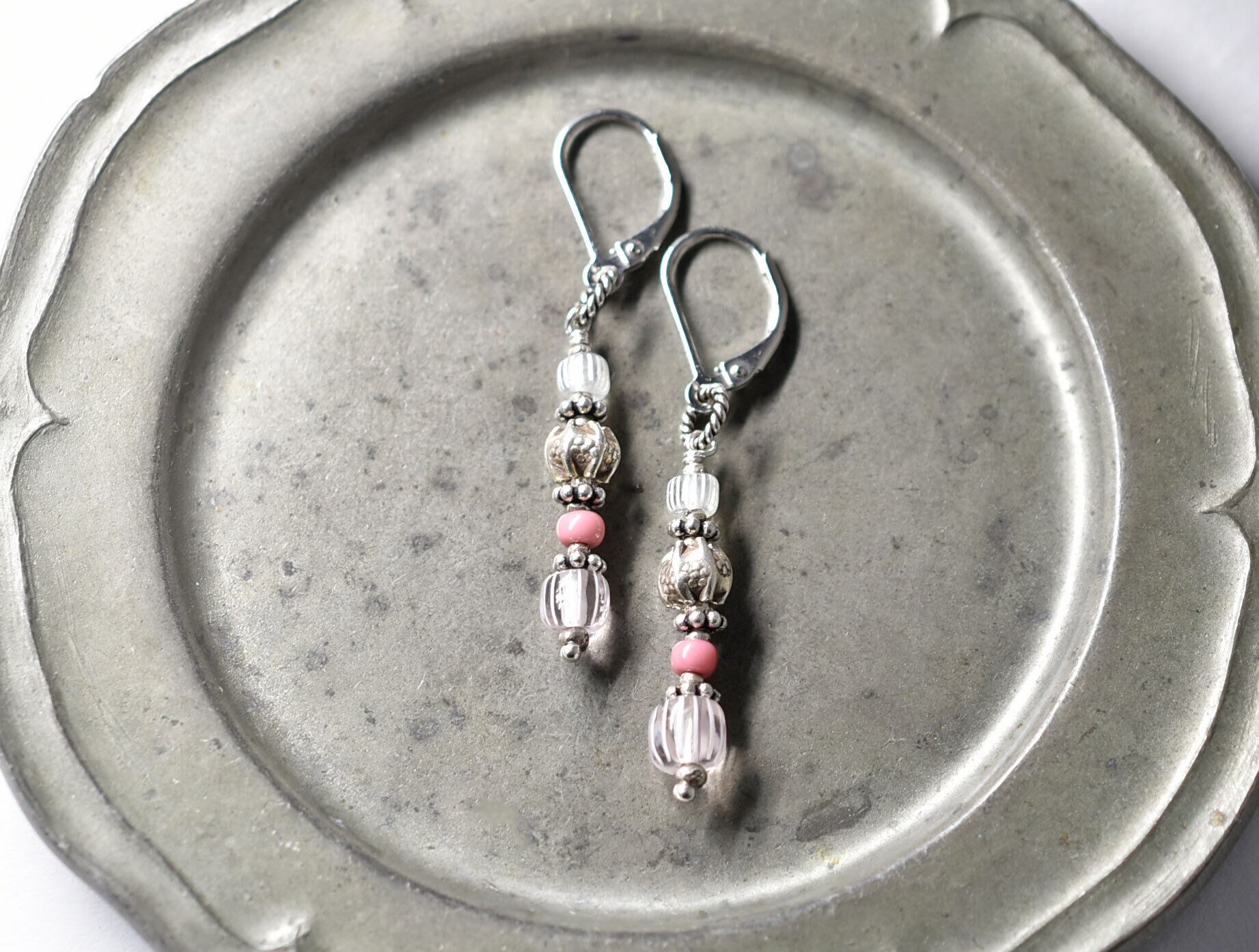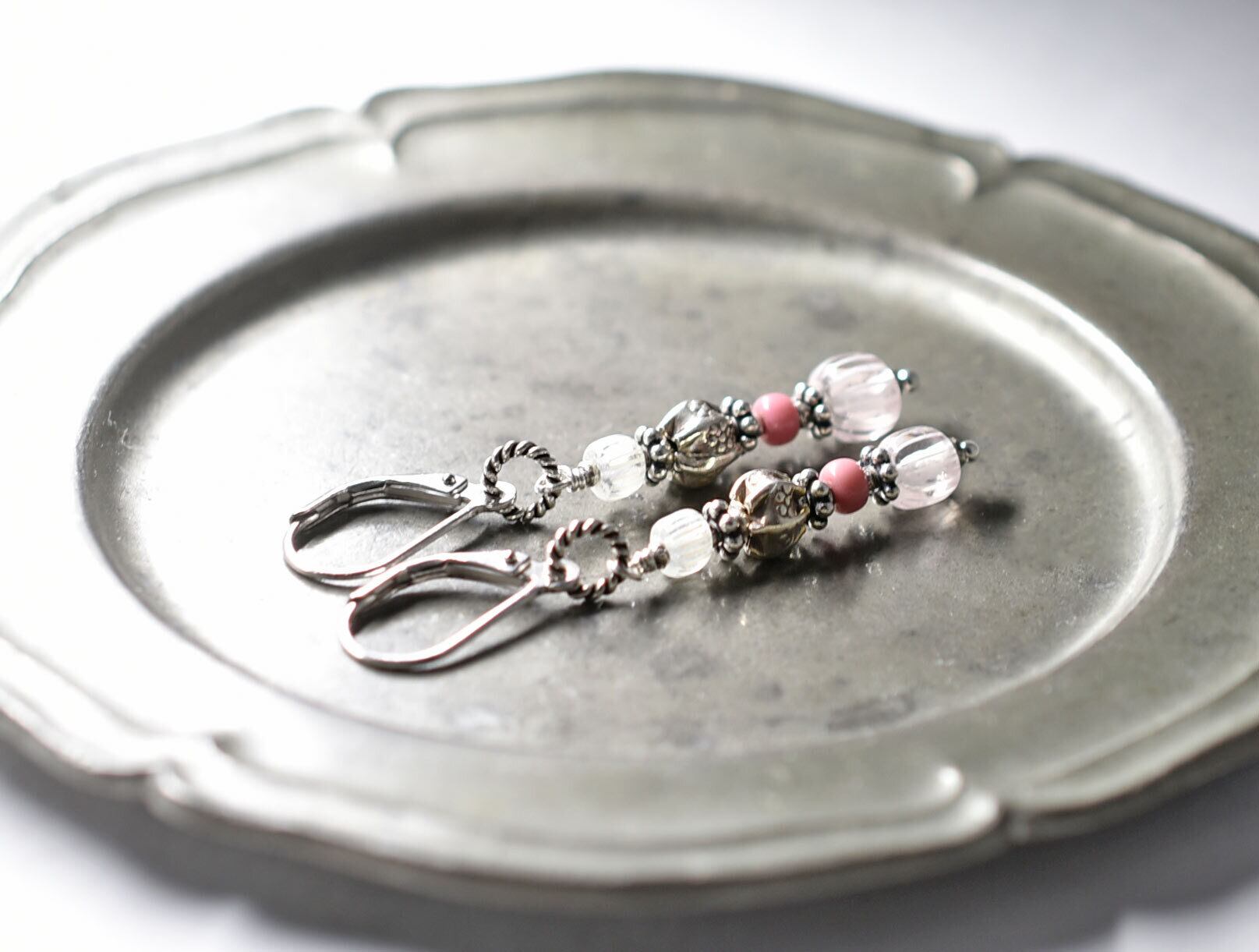 2種類のアンティークグーズベリーとピンクマサイ、カレンシルバーのピアス