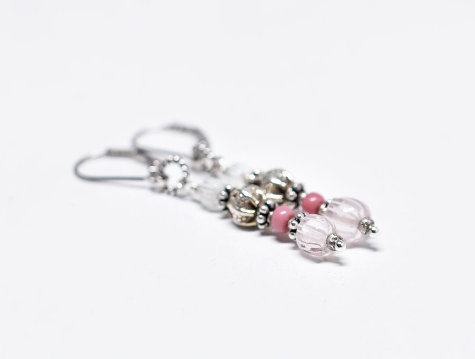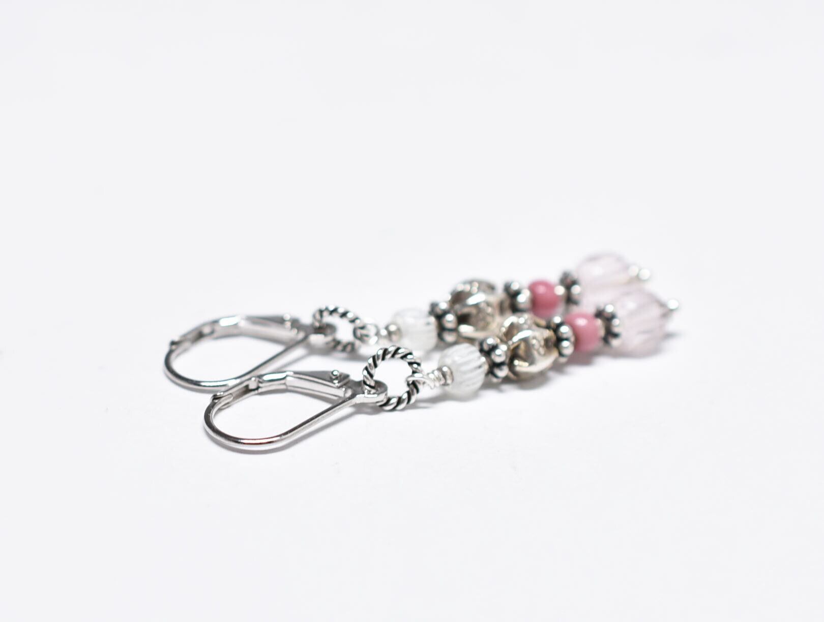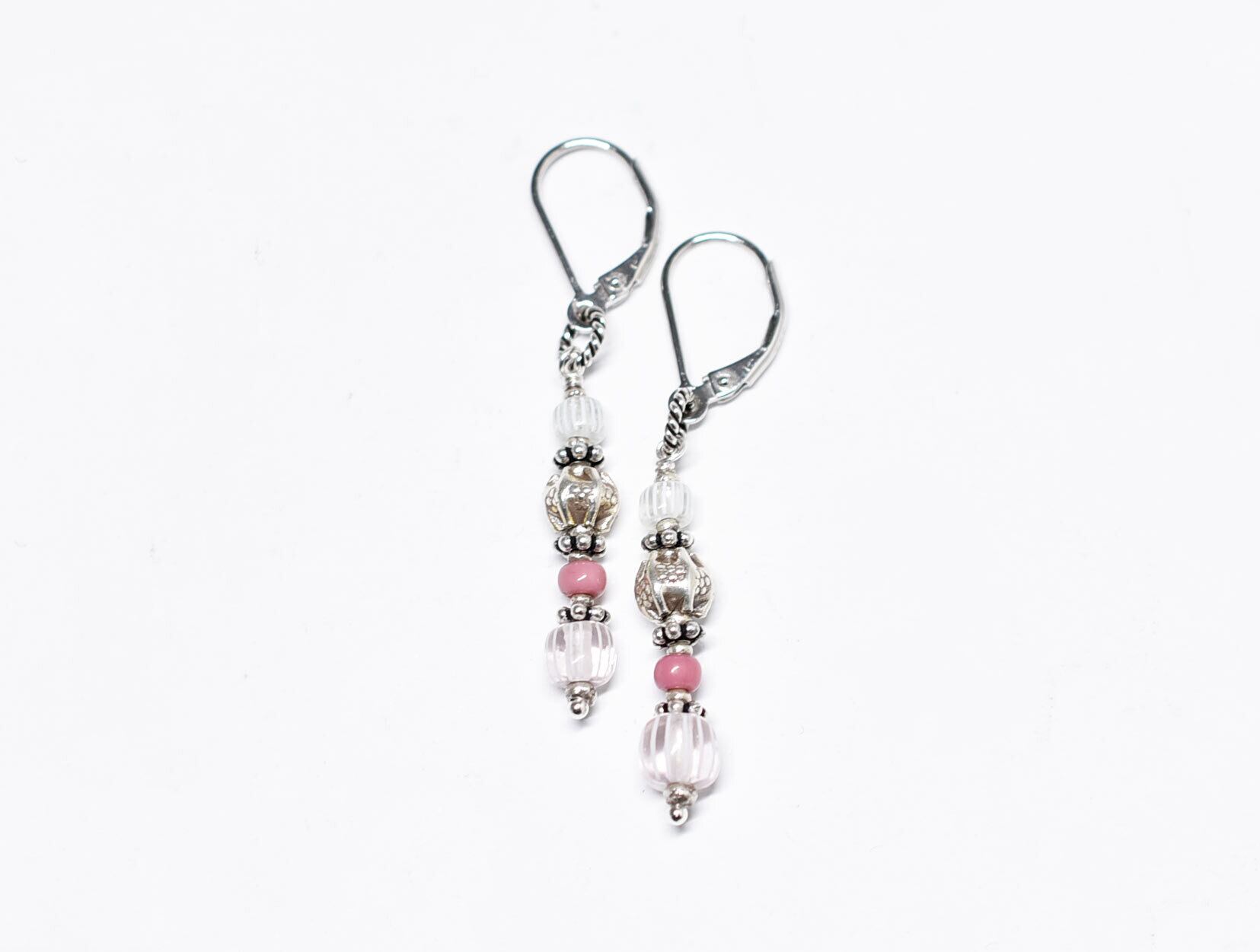 2種類のアンティークグーズベリーとピンクマサイ、カレンシルバーのピアス