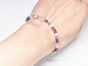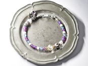 ヴィンテージオーロラビーズとカレンシルバー 、グーズベリー、すみれ色ビーズ、アクアマリン、シルバー装飾アメジスト&お花チャームを繋いだブレスです。